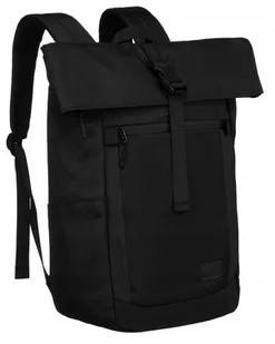 Czarny plecak sportowo-miejski typu roll-top. Wykonany z tkaniny poliestrowej odpornej na wilgoć i warunki atmosferyczne. Zmieści laptopa o przekątnej do 15,6 cala. Jednokomorowy, posiada dodatkowe kieszenie wewnętrzne i zewnętrzne.