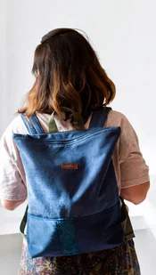 Duży, damski plecak miejski zapinany na suwak w kolorze granatowym. Regulowane paski. W środku biała, bawełniana podszewka w kwiaty oraz mała kieszonka na suwak. Plecak jest oryginalny i przy ...