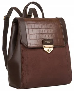 Brązowy duży plecak damski ze skóry ekologicznej i tkaniny funkcjonalny i pojemny kieszonki regulowane szelki mieści a4 DAVID JONES