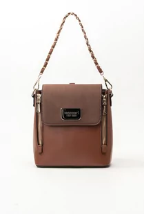 Mały plecak damski z klapą. Plecak jednokomorowy o jasnym wnętrzu z dodatkowymi kieszonkami na drobiazgi. Plecak zawieszony na odpinanej rączce oraz dwóch regulowanych paskach w zestawie. Plecak po bokach ma dwa ozdobne suwaki. Plecak można również nosić jako torbę.