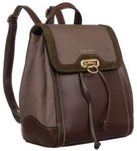 Brązowy duży plecak damski ze skóry ekologicznej i tkaniny funkcjonalny i pojemny kieszonki regulowane szelki mieści a4 DAVID JONES