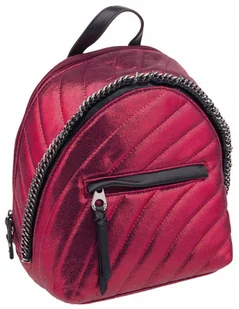 Plecak pikowany. Na przodzie ma kieszeń zdobioną bardzo ciekawym, dużym zamkiem w srebrnym kolorze. Wszystkie okucia plecaczka mają ten kolor. Oprócz długich i regulowanych szelek, w wyposażeniu znajduje się rączka. Plecak jednokomorowy.
