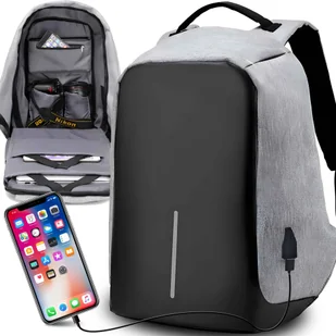PLECAK ANTYKRADZIEŻOWY WODOODPORNY Z PORTEM USB plecak antykradzieżowy wykonany z najwyższej jakości materiałów odporny na przecięcia nożem wyposażony w port...
