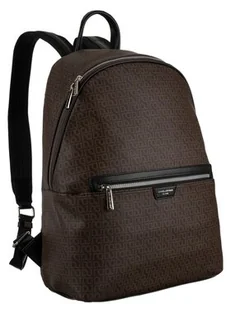 Brązowy duży plecak damski ze skóry ekologicznej i tkaniny funkcjonalny i pojemny kieszonki regulowane szelki mieści a4 DAVID JONES
