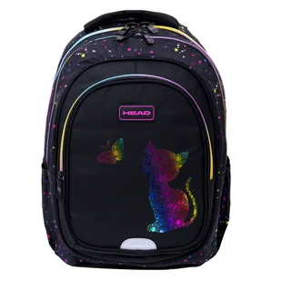 • 3 komory, KOLOROWY HOLOGRAFICZNY KOTEK, OMBRE SUWAKI • 2 kieszenie zewnętrzne • przegroda na laptop• w środku przedniej komóry przegródki na przybory, telefon, karabińczyk na klucze|• profilowane, ergonomiczne plecy• miękkie szelki z regulacją. . .