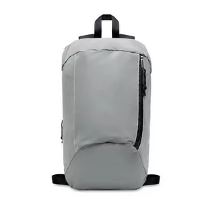 Plecak z odblaskowego poliestru z zapinaną na suwak kieszenią zewnętrzną i wygodną częścią tylną wyściełaną poliestrem 600D. Wymiary: 22X10X39 CM