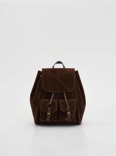 Reserved - Zamszowy plecak z kieszeniami - ciemnobrązowy