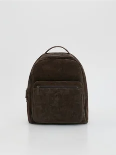 Reserved - Zamszowy plecak z uchwytem - ciemnobrązowy