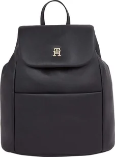 Poliester z recyklingu 51%, poliuretan 49% Stylowy plecak damski od Tommy Hilfiger Producent : Tommy Hilfiger Kolor : czarny Materiał : 51% poliester, 49% poliuretan Wymiary: