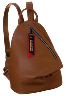 Ciekawy, jednokomorowy plecak damski wyszyty z wysokogatunkowej skóry ekologicznej, zamykany na suwak. Wnętrze wyposażone w dwie kieszonki na suwak oraz otwartą przegródkę. Dwie kieszenie zewnętrzne wyszyte na froncie i z tyłu. Długie, regulowane szelki.