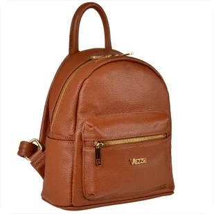 VEZZE Plecak damski camel brąz ze skóry naturalnej z zamkiem