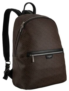 Owalny plecak damski wykonany z wysokogatunkowej skóry ekologicznej pokrytym monogramem. Posiada pojemną komorę, wewnątrz której znajduje się przegroda na urządzenie przenośne oraz 3 inne kieszonki. Plecak wyposażony w komfortowe, regulowane szelki.