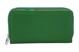 W części zasuwanej znajdują się dwie przegrody na banknoty, środkowa kieszeń zasuwana miesząca bilon oraz sześć miejsc na karty lub wizytówki. Antykradzieżowy portfel z ochroną RFID dostępny w najnowszej kolekcji Dla Pań będzie idealny rozmiarowo w torebkach klasycznych, plecakach, workach lub większych listonoszkach. Wymiary portfela: wysokość 10,5cm, szerokość 18,5cm, szerokość dna 2cm Kolor portfela: zielony