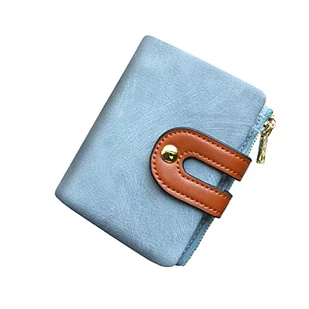 AOXONEL Damski mały składany portfel skórzany RFID, damski, mini zamek błyskawiczny, portmonetka, kieszeń na karty, wąski, kompaktowy, cienki (niebieski)
