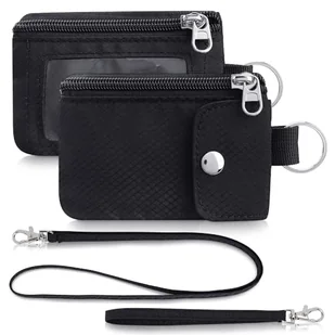 Artpaxy Minimalistyczny portfel dla mężczyzn i kobiet, brelok blokujący RFID, zamek błyskawiczny, mały portfel z okienkiem na dowód osobisty, 2 smycze, wodoodporny podróżny futerał na karty gotówkowe