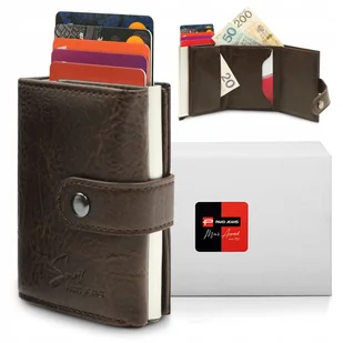 Automatyczny PORTFEL na Karty z Ochroną RFID Wysuwany Pako Jeans BRĄZOWY