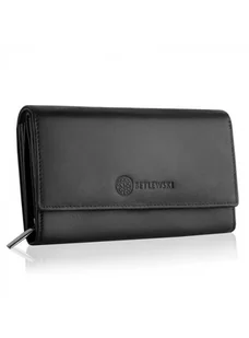 portfel damski marki Betlewski wykonany ze skóry naturalnej na froncie znajduje się wytłoczone logo marki zapinany na nap portfel zawiera: - 6 przegródek na ...