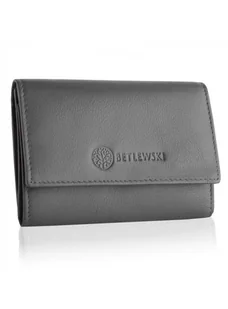 portfel damski marki Betlewski wykonany ze skóry naturalnej na froncie znajduje się wytłoczone logo marki zapinany na nap portfel zawiera: - 8 przegródek na ...