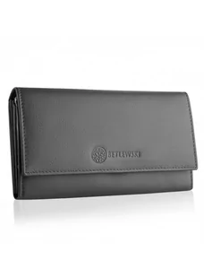 portfel damski marki Betlewski wykonany ze skóry naturalnej na froncie znajduje się wytłoczone logo marki zapinany na nap portfel zawiera: - 5 przegródek na ...
