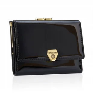 Betlewski portfel damski ze skóry naturalnej lakierowany gładki błyszczący