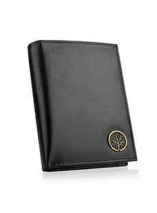 portfel męski marki Betlewski wykonany z lekko połyskującej naturalnej skóry licowej na froncie znajduje się metalowe logo marki w kolorze złota portfel zawi...