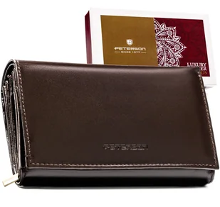 PETERSON® ☑️ Materiał: skóra naturalna ☑️ Kolor: brązowy ☑️ Wysokość: 9,5 cm ☑️ Szerokość: 15 cm ☑️ Głębokość: