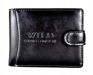 CZARNY Zapinany PORTFEL Męski Młodzieżowy Portmonetka + ZAPNIKA SKÓRA Wild