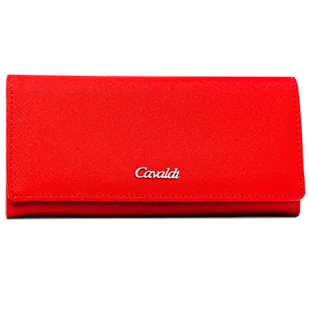 Czerwony duży klasyczny portfel damski ze skóry ekologicznej CAVALDI rozbudowany na karty gotówkę schowek na suwak pudełko prezentowe