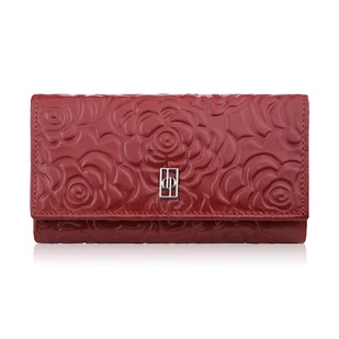 Czerwony portfel damski skórzany w kwiaty duży Paolo Peruzzi AL-14-RD