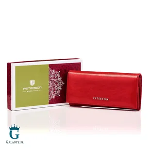 Klasyczny elegancki czerwony portfel damski PETERSON skóra naturalna duży rozbudowany na karty i gotówkę pudełko prezentowe ochrona RFID