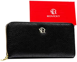 Damski portfel Rovicky na suwak pojemny piórnik na karty i gotówkę modna portmonetka eko, czarny