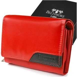 Damski skórzany portfel duży poziomy retro RFiD czerwony BELTIMORE 043 czerwony