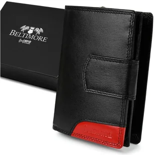 Duży, damski portfel wykonany z bydlęcej skóry naturalnej w pięknym intensywnym, czarnym kolorze z dodatkową, kontrastującą, czerwoną wstawką. Portfel marki ...