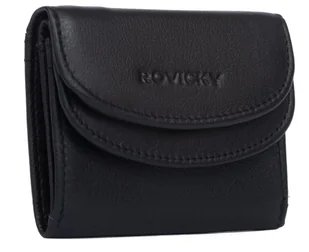 Damski skórzany portfel Rovicky na zatrzask minimalistyczna portmonetka na karty i gotówkę, czarny