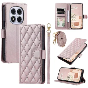 Dla Xiaomi Redmi Note 14 Pro 5G Note 14 Pro 5G Poco X7 5G Portfel Etui Rhombus Grid PU Skórzany telefon Różowe złoto Rose Gold