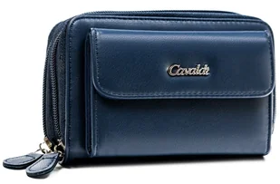 Duży portfel damski na dokumenty i karty portmonetka na suwak skóra ekologiczna Cavaldi, granatowy