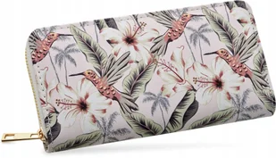 Duży portfel damski portmonetka kopertówka liście kwiaty kolorowy wzór