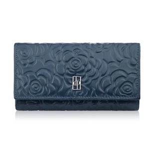 DUŻY PORTFEL DAMSKI SKÓRZANY Z TŁOCZENIEM W KWIATY GRANATOWY PAOLO PERUZZI AL-14-NV