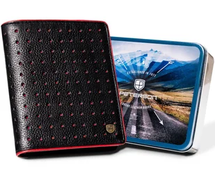 PETERSONⓇ portfel męski skórzany RFID #️⃣ Polska marka | Produkt znanej i cenionej polskiej marki z wieloletnią tradycją #️⃣ Jakość na najwyższym poziomie | Odszyty bardzo trwale z doskonałej jakości skóry naturalnej, która idealnie będzie pasowała do eleganckiego paska czy butów #️⃣ Klasyka zawsze w modzie | Portfel o klasycznej stylistyce z czerwoną obwódką. Model w orientacji pionowej bez zapięcia zewnętrznego #️⃣ Rozbudowane, pojemne wnętrze | Portfel będzie dla Ciebie idealny, jeżeli na co dzień nosisz dokumenty w dużym formacie jak np. dowód rejestracyjny. Ponadto zmieścisz w nim pokaźne ilości kart oraz gotówki #️⃣ Bezpieczeństwo na wysokim poziomie | Wyposażony w technologię RFID BLOCKING SYSTEM, która zabezpiecza karty zbliżeniowe, dokumenty biometryczne, legitymacje i karty komunikacji miejskiej przed nieautoryzowanym odczytem danych Parametry ☑️ marka: PETERSON® ☑️ materiał: