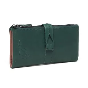 Duży portfel skórzany, Zielony, Única