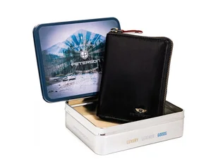 PETERSON modny portfel męski w pudełku z metalu Skórzany męski portfel czarny PETERSON # Jakość i precyzja wykonania | Odszyty bardzo trwale z doskonałej ...