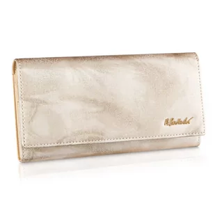 Skórzany portfel damski w kolorze srebrnym. Wysokiej jakości skóra naturalna lakierowana, z jakiej został uszyty portfel, świetnie prezentuje się podczas uży...