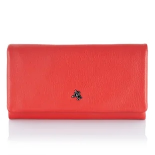 Okładka portfela jest wykonana ze skóry naturalnej w kolorze czarnym lub czerwonym, natomiast jego wnętrze stworzone we wszystkich kolorach tęczy poprawi nastrój właścicielki nawet w najbardziej ponury dzień. To dość duży portfel orientacji poziomej o wymiarach 18,5 cm x 10 cm x 3,5 cm. Zgrabnie leży w dłoni, a równocześnie jest bardzo pojemny. Mieści: kieszeń na monety zamykaną na zamek błyskawiczny przegrodę na banknoty aż 14 miejsc na karty przezroczyste okienko na zdjęcie bliskiej osoby lub dowód osobisty dwie szerokie przegrody na notatki lub bilety 2 kieszenie na zewnątrz portfela, w tym jedną zamykaną na zamek Portfel jest zamykany na wygodny zatrzask i posiada dodatkowe wewnętrzne zapięcie. Elegancki i praktyczny prezent Jeśli szukasz dla ukochanej lub przyjaciółki nietuzinkowego portfela, który będzie cieszył oko swoim wyglądem i przechowywał wszystkie istotne dokumenty i pieniądze, ten model będzie idealny.