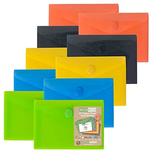 eco-eco A7 50% recyklingowane różne kolory wciskany portfel na zatrzaski, plastikowe foldery (opakowanie 10), zielony, czarny, niebieski, żółty, pomarańczowy, eco077x2