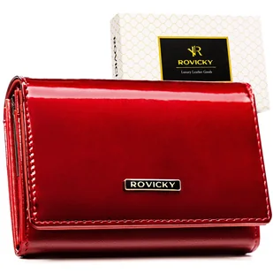 Elegancki lakierowany portfel damski ROVICKY skóra naturalna i ekologiczna karty dokumenty gotówka ochrona RFID czerwony