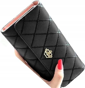 Portfel damski duży z koroną obszywany ozdobnie Wygodny damski portfel portmonetka z praktycznym zamknięciem. Damski portfel pięknie ozdobnie wykończony obsz...