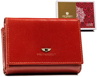 Mały portfel damski skórzany PETERSON brązowy na zatrzask i bigiel rfid stop elegancki