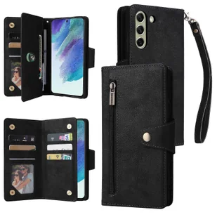 Foxdock Kompatybilny z etui Samsung Galaxy S21 FE 5G Skórzany PU Magnetyczny uchwyt na karty z klapką z klapką Pokrowiec na portfel Czarny