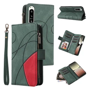 Foxdock Kompatybilny z Sony Xperia 5 IV Etui-portfel z miejscami na karty PU Skórzany zamek błyskawiczny z klapką Folio Zielony