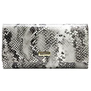 Elegancki portfel damski GREGORIO, wykonany bardzo starannie z wysokiej jakości skóry. Doskonały na prezent! Kolor: srebrny,szary Wysokość: 10 cm Szerokość: 18,5 cm Głębokość: